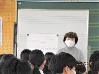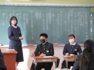 2年生はキャリア教育の一環として,マナー講座や「夢を叶えた先輩のお話を聴く会」を行っています。今年は,西浜町在住の永田さんにマナー講座,前芝町在住の見目さんと日色野町在住の塩野谷さんをお招きしました。