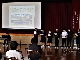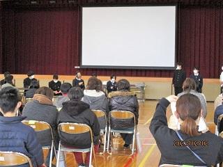 入学説明会がありました。1年生の代表9名が中学校生活についてレクチャーしました。