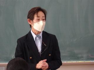 同窓会長様をお迎えし,同窓会入会式を行いました。ご自身の経験をふまえ,新生活へのエールを送ってくださいました。卒業記念品として卒業証書ホルダーをいただきました。