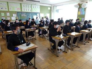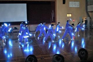 後期生徒会執行部が中心となって,「3年生を送る会」を行いました。1・2年生や先生方からのメッセージや思い出のスライドなどに泣いたり笑ったり・・・。 コロナ禍だからこそ始まった「ヲタ芸」披露は伝統になりつつあります。