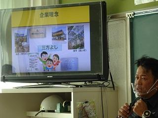 地元で電設会社を経営する見目さんからは,中学生時代の思い出や取締役社長となったいきさつ,会社経営の理念をお話しいただきました。