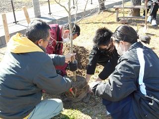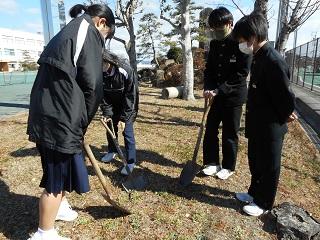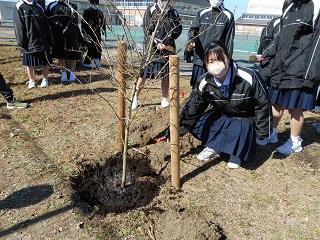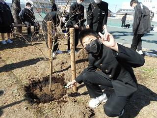 卒業式を3週間後に控えた3年生が,サルスベリの木を記念に植樹しました。