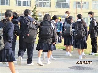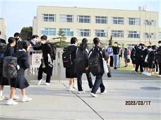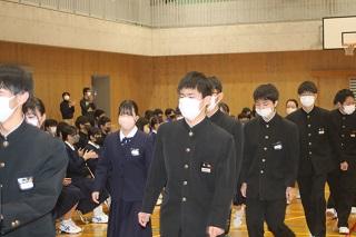 入学式以来,久しぶりに見た素顔の生徒たちは,確実に顔が大人びていて3年間の成長に感じ入りました。校歌の歌詞にあるように,おおらかな心いだきて 人生の新しいステージに踏み出してください。卒業おめでとう。
