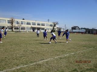 青空の下,マスクを外した生徒たちの躍動感あふれる動き,スピーディーなボール回し等を目の当たりにし,コロナ前の中学生たちの姿がよみがえってきました。チームで得点を喜び合う笑顔が輝き,大きな声が小学校の芝生運動場に響いていました。