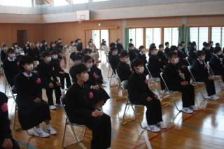 三河木材をふんだんに使った体育館を広々と使い、保護者と1年職員に見守られながらの入学式でした。
