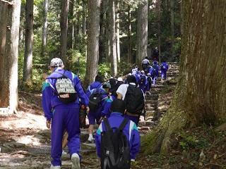 気持ちのよい青空の下、1年生が1泊2日でオリエンテーション合宿に行ってきました。まずは鳳来寺山登山。石段の数を数えながら登りました。