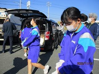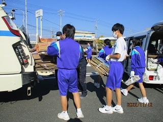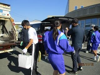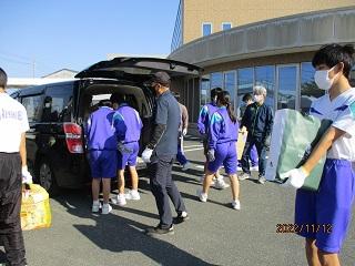 土曜日の午後,勤労体験学習の一環で資源回収を行いました。各地区からPTAの皆さんが運んでくださった資源をパッカー車やコンテナに分別して運び入れます。立冬も過ぎたというのに気温が高く汗ばむ陽気の下,生徒はきびきびと働いてくれました。