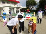 お別れときには、学校に戻る中学生に対して、園児たちは門のところまで駆け寄って大きな声で「バイバイ」と言って見送ってくれました。