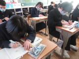 卒業式はまだ少し先ですが、3年生は最後の授業となる教科が少しずつ出てきました。2月16日(月)は最後の音楽の授業、17日(火)は最後の家庭科の授業でした。授業の最後にクラス全員からの手紙を教科係が渡し、全員で「ありがとうございました」という言葉と感謝の拍手を送りました。先生がたからもメッセージをいただきました。技術は先週終わってしまったので、今日、無事に手紙を渡すことができました。