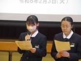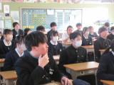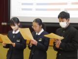 2月13日(金)の学期末テスト終了後の3時間目に全校集会を行いました。