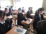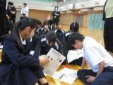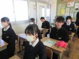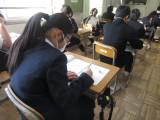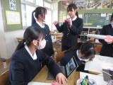 2年生の家庭科では、消費者被害について学んでいました。被害の具体的な内容、被害にあいやすい場面や年齢などについて学びました。実際の被害について、ロールプレイング(役割演技)をすることにより、さらに理解を深めていました。役者ぞろいの2年生なので大いに盛り上がっていたそうです。参観に行ったときはすでに終わっていたのですが、サービスでもう1回心優しい生徒たちが怪しい(!?)芸能事務所の勧誘のロールプレイを見せてくれました。