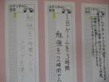 教室に戻り、「私のメディチャレ宣言」を記入しました。1か月間がんばれるように宣言カードを掲示し、守れたかどうかを確認できるようにしました。自分の体・脳・心のために改善の一歩を踏み出してほしいと思います。ぜひご家庭でも話題に取り上げ、家族みんなで取り組みを始めていただけたらうれしいです。