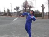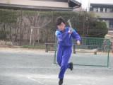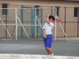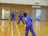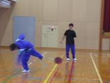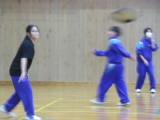 1年生の「アルティメット」はフライングディスクをパスしながら運び、エンドゾーンをめざす競技です。今は、まだこの単元が始まったばかりなので、かたいディスクではなく、やわらかいフリスビーを使って練習しています。まっすぐ投げる練習や、相手をかわしてパスをする練習、ディフェンスの位置を見て、どこでディスクを受け取ればよいかを考える練習などをしていました。なかなかディスクがまっすぐ飛ばないので、キャッチするほうも苦労していました。
