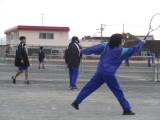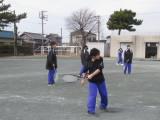2月6日(金)の2時間目は3年生は体育の授業でテニスをしました。テニス部の生徒も多いので、久しぶりのテニスに笑顔があふれていました。テニス部以外の生徒でもサーブが上手な生徒、ボレーができる生徒もいて、テニス部以外の生徒同士でも打ち合いが続いていました。どの生徒も笑顔で、受験のことを少しだけ忘れる時間になったようです。
