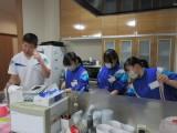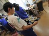 そして、今日は、校区市民館で行われる喜寿苑主催の「一緒に作ろう!」のボランティアを行いました。小学生や高齢者のかたがトレーづくりをするので、そのお手伝いのためのボランティアです。1年生3名と3年生1名が参加し、各テーブルに分かれて一緒にトレーづくりを楽しみました。机の準備からトレーづくりの手助け、道具のかたづけまで中学生がほとんど行ってくれました。頼もしい姿でした。
