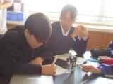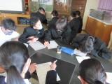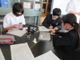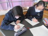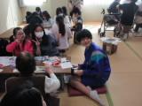そして、今日は、校区市民館で行われる喜寿苑主催の「一緒に作ろう!」のボランティアを行いました。小学生や高齢者のかたがトレーづくりをするので、そのお手伝いのためのボランティアです。1年生3名と3年生1名が参加し、各テーブルに分かれて一緒にトレーづくりを楽しみました。机の準備からトレーづくりの手助け、道具のかたづけまで中学生がほとんど行ってくれました。頼もしい姿でした。