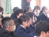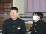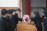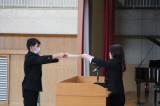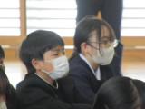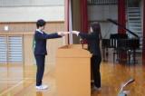 修了式では、代表生徒が修了証を受け取りました。1・2年生ともに、礼が丁寧で、全員がそろっていて、感心しました。また、みんなが明るい笑顔で話を聞く姿がありました。頷いたり、隣の生徒と笑い合ったりして、よい雰囲気のなか行われました。