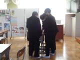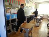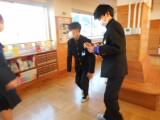 お昼の放送で生徒会長が全校生徒に呼びかけましたが、今日は思うほど募金が集まりませんでした。生徒会長から、2回目のお願いの呼びかけを行いたいという申し出があり、お昼の放送で再度募金の協力について熱く語ってくれました。また昼放課には、生徒会長と「どうたくん」の二人で各教室や職員室で募金の呼びかけを行ったり、授業後には小学校の職員室にも出向き、直接先生がたに協力を呼びかけてくれました。