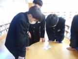 12月19日(金)に3年生が、5時間目に学年レクレーション、6時間目には修学旅行のまとめの発表会(続き)を行いました。学年レクレーションでは、代表者会が考えた「宝さがし&謎解き」を教室・学習室・図書室を使って行いました。4グループに分かれて封筒(宝)に書かれた謎を解きながら正解してポイントをゲットしていくゲームです。残った時間はフルーツバスケットを行いました。