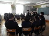 12月12日(金)今日の5・6時間目の総合的な学習の時間に3年生が修学旅行のまとめを一人一人発表しました。パワーポイントを使って、3日間の見学場所や3日間で学んだことなどを写真資料を使って上手にまとめていました。中には、クイズを入れて聞いている人の興味をひいている生徒もいました。東京や横浜のよさや特徴に気づいただけでなく、前芝のよさにも気づいたという感想も多くありました。一度外へ出て、外から地元を見るということも大切なことのようですね。