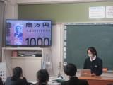 2年生の発表のあと、講師の先生が準備してきてくださったパワーポイント等の映像や音楽の資料を使って自分の国の様々な文化について教えていただきました。その国の学校事情、伝統文化(音楽やダンス)、貨幣、食文化など、子どもたちは初めて知ることばかりで、真剣な表情で講師の先生の話に耳を傾けていました。その後、質問や感想を交流して、あっという間の45分間が終わってしまいました。