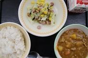 今日の給食は、ウインナーとやさいのソテー、米粉カレーライスです。