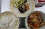 今日の給食は、ごはん、さばのみそ煮、そえやさい、肉じゃがです。