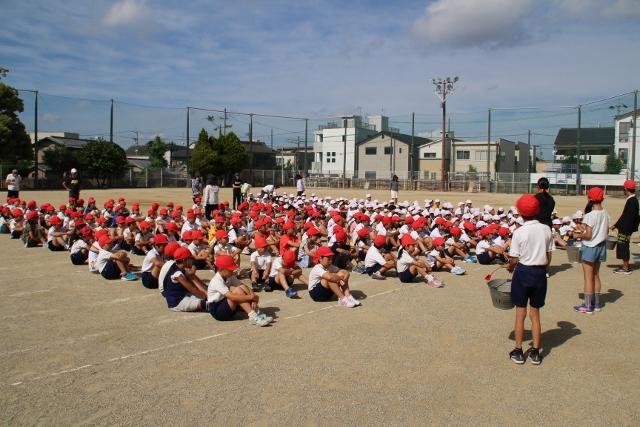 本日の朝は,つばさ集会でした。全校でピックアップストーン(石拾い大会)を行いました。全校が白熱して石を拾いまくっていました。結果は後日発表されます。