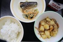 今日の給食は、ごはん、いわしのしょうが煮、ごまあえ、肉じゃがです。
