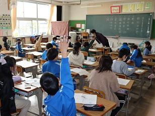 4年生の各教室とオンラインで結んで、水族館の出前授業が行われました。ふだん見たことのない海の生き物の意外な一面や秘密を知って、教室が沸き返っています。
