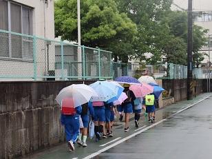 学校はすぐそこ。「くつ下、びちゃびちゃ」との嘆きも。
