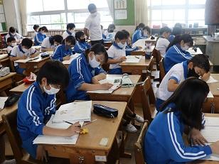 6年生国語の授業中。自分の意見をしっかり書けて感心。