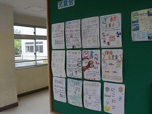 渡り廊下に児童会(委員会)のポスターが出揃いました。