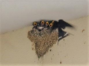 親つばめの羽音に「きた!ちょうだい、ちょうだい」