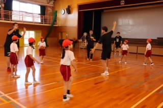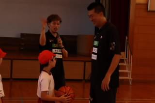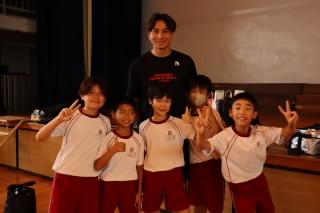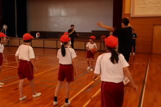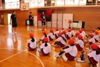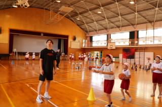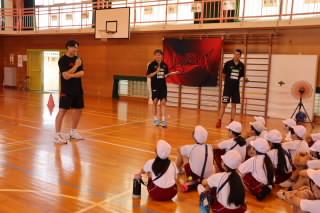三遠ネオフェニックスの方々が学校に来てくれて、バスケットの楽しさを教えてくれました。現役選手の津谷一球選手も来てくれ、身長の高さにみんなびっくりしていました。
