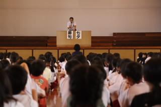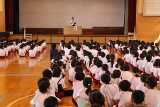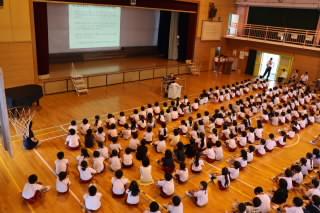〈全校朝会では、校長先生よりたくさんの命がつながって今の自分があること、命はたいせつであること、そして今日1日命について深く考えようとお話がありました。〉