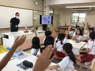 21日金曜日、出前講座があり、小鷹野浄水場の方からお話を聞きました。すでに社会で学習していることを図や絵で示していただいたことで、とてもわかりやすく話を聞くことができたようです。水源林のことや、三河地方にあるダムのことを学んだときは、子どもたちはすぐに「設楽ダムはまだ完成に時間がかかるんだよね」と言っていました。「よく知っているね」と言われ、とても嬉しそうにしていました。先日行ったわくわく体験活動も含めて、水についてたくさんのことを学びました。来週は、下水道について、再来週はごみついて出前講座があります。豊橋市民の生活に関係する仕事に関わっている方の話を聞くことで、より豊橋のことを知ってほしいと思います。