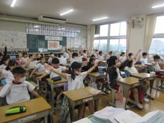 全校朝会で校長先生のお話がありました。もうすぐ七夕です。七夕の由来、5節句の話がありました。日本は、季節の節目となる日を大切にしてきました。子どもたちの中には、5節句のことを知っている子もいました。校長先生の願いは、「みんなが元気で健康ですごすことができますように」です。子どもたちは、どんな願い事を願うのでしょうか。