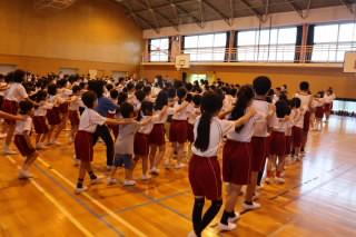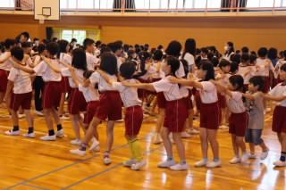 1時間目にふれあい集会が開かれました。常任委員会が企画したゲームをふれあい班(縦割り班)で楽しみました。初めにじゃんけん列車を行いました。じゃんけん列車では、まず初めに班の中でじゃんけんをして勝った人を先頭に列を作りました。そして、全体でのじゃんけん列車をしました。3年生の児童を先頭にしているfふれあい班が、学校じゃんけんチャンピオンになりました。