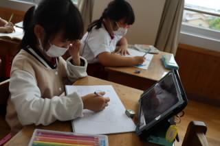 〈タブレットを使ってイラストを探したり、家から本を持ってきて描いたりしたよ。〉