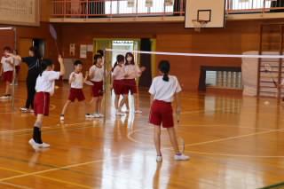 〈ネットを挟んでペアで対決だ!羽を落とさないように打つのって難しいなあ~〉