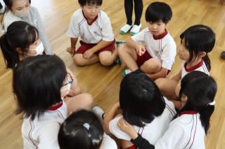 縦割りでの児童集会がありました。今日は、常任委員会(児童会)の企画でした。「猛獣狩りに行こうよ」を全校で行いました。常任委員会の子たちがステージでゲームの仕方を説明し、言われた猛獣の文字数だけ仲間を集めました。初めは、近場の子たちと集まって座っていた子たちも、次第にたくさんの子とかかわりあうことができるようになりました。