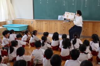 図書館ボランティアの方々が来てくださり、子どもたちに読み聞かせをしてくれます。みんなどんな話が聞けるのか毎回楽しみにしています。