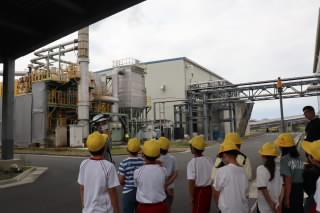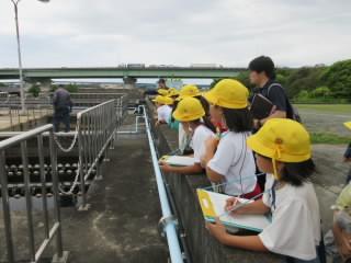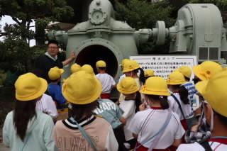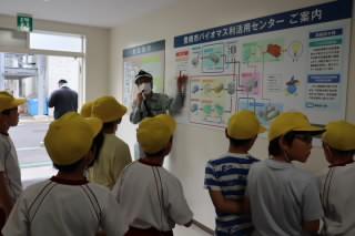 天気に恵まれバスでわくわく体験に出かけました。中島処理場では少しずつ水がきれいになっていく様子を、バイオマス利活用センターでは生ごみなどの集約によるメタン発酵により再生可能エネルギーであるバイオマスを取り出し、バイオマス発電のエネルギーとして利活用していることを知りました。そのエネルギーが、学校のエアコン使用に使われていて「みんなのところに返っているんだよ。」と聞き、子どもたちはとても驚いた様子でした。