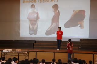 学校保健委員会では、学校歯科医の中野先生をお招きし、姿勢と歯並びが深く関係していることを、正しいお口の姿勢や姿勢トレーニングを実践することで楽しく学びました。