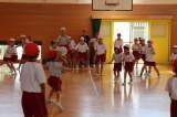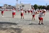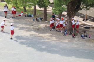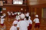 〈体育館では、「ドッジボール」「ハンカチ落とし」が行われました。〉