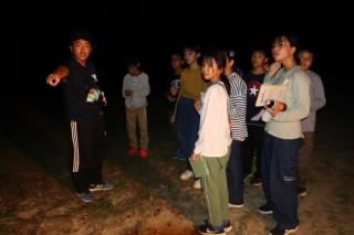 〈夕食の後の時間で、キャンプファイヤーの場所や内容の確認中!みんな楽しみにしているよ。〉