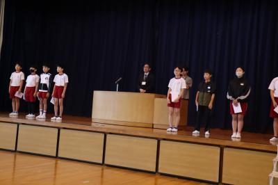 全校朝会で委員会の前期委員長の認証式がありました。4年生から6年生までが委員会に取り組み、学校がよりよくなるために活動します。 今年もそれぞれの委員会で話し合い、目玉活動としてキャンペーンに取り組んだり、児童集会で委員会の取り組みを発表したりしていきます。 校長先生から認証書を受け取り、委員長のみなさんの顔も引き締まっていました。