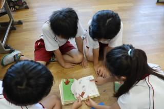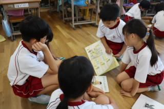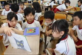朝の学習の時間を活用して、ふれあい読みが行われました。6年生は1年生に、5年生は2年生に、4年生は3年生に絵本を読み聞かせました。読み聞かせを行う学年は、どんな本を読むとふれあい班の子たちがよろこんでくれるのか、楽しんでくれるのか考え、この日のために本を準備し、読む練習をしてきました。お兄さん、お姉さんが、上手に読み聞かせをしてくれ、みんな楽しそうにお話の世界に入り込んでいました。