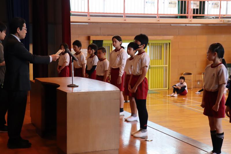 一覧へ 1. 4月17日認証式 投稿日時: 2024/04/17 主担 朝方の大雨が嘘のようにやみ、天気も回復してきました。 今日は、全校朝会で常任委員会(児童会)、前期学級代表の認証式が行われました。 これから学校の中心となり、全校をまとめていく常任委員の子どもたち。クラスをよりよくするために中心となって活躍する学級代表の子どもたち。 これからの活躍が楽しみです。